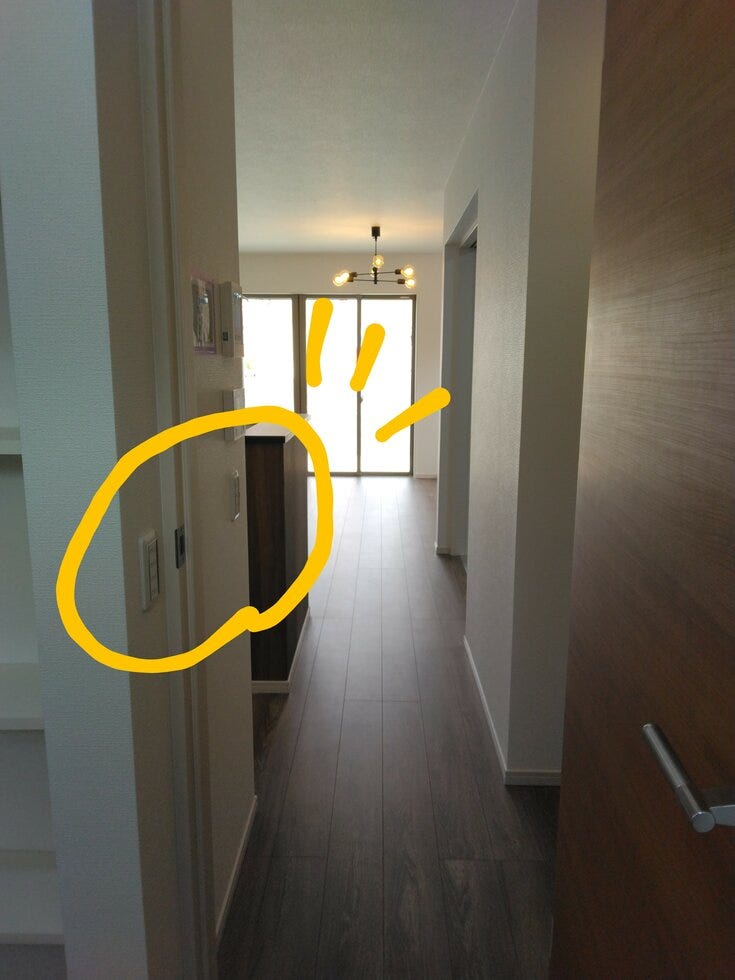 1枚目は、ドアノブのすぐ横あたりにスイッチがあるのに比べて